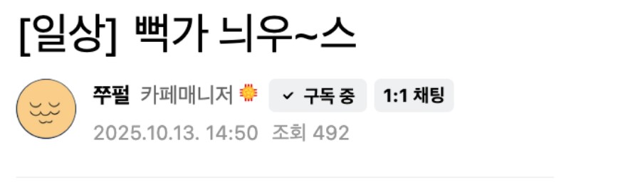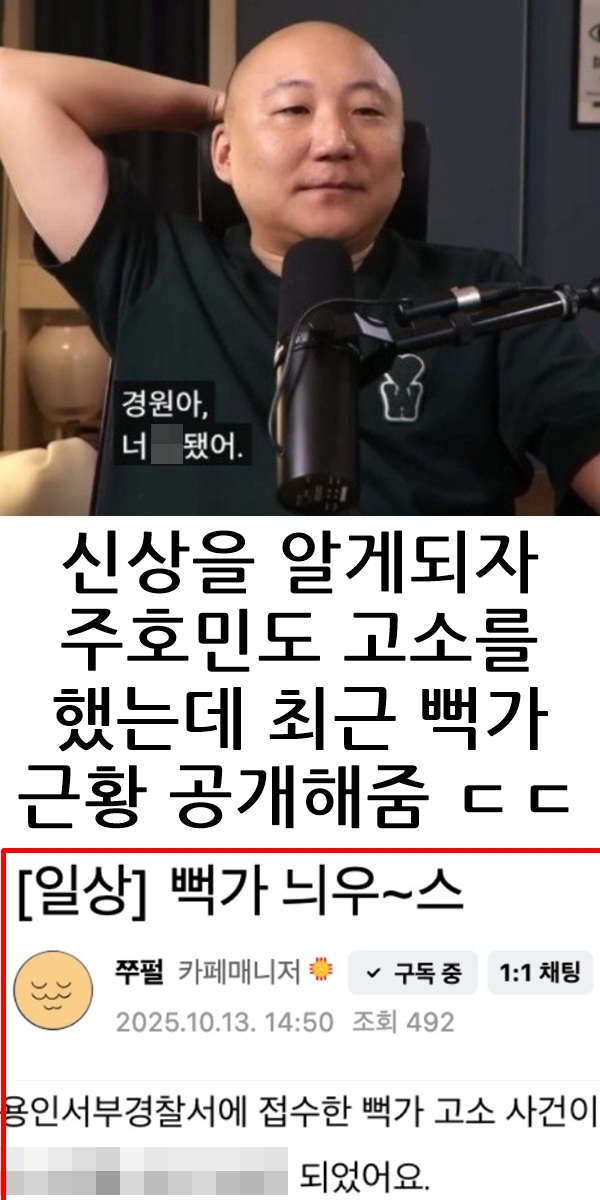 주호민이 공개한 렉카 유튜버 뻑가 근황 October 14, 2025 pullman 주호민이 공개한 렉카 유튜버 뻑가 근황 과즙세연이 쏘아올린 작은공이 이렇게 ㅎㄷㄷ Post Views: 78