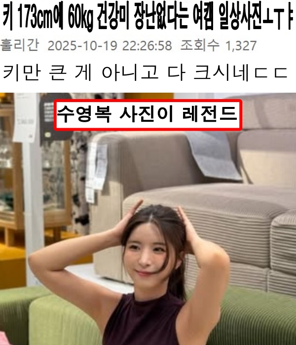 키 173cm에 60kg 건강미 장난없다는 여캠 일상사진ㅗㅜㅑ October 21, 2025 pullman 키 173cm에 60kg 건강미 장난없다는 여캠 일상사진ㅗㅜㅑ Post Views: 33