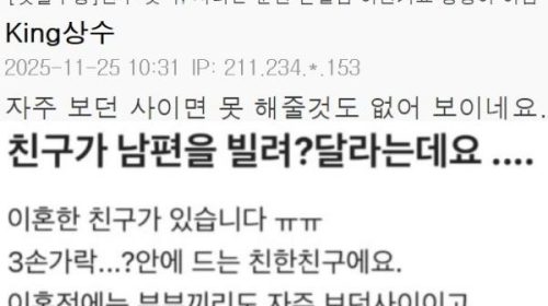 실시간 커뮤에서 난리났다는 친구 남편 논란ㄷㄷㄷ