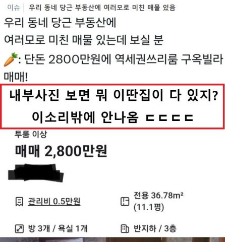 우리 동네 당근 부동산에 여러모로 미친 매물 있음